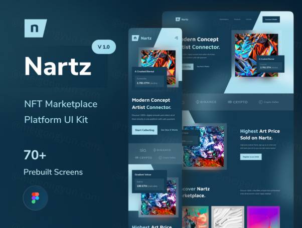 图穷联素材库 » 高质量NFT数字产品交易市场多平台响应式UI界面素材 Nartz -