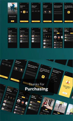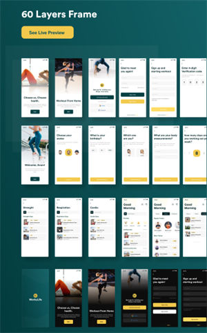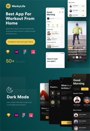 图穷联素材库 » 居家锻炼健身瑜伽移动APP界面UI素材 WorkyLife - Wor
