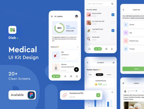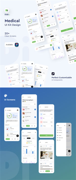 Diab 是 Monodeep 专业设计的 Figma 糖尿病管理应用 UI 套件。