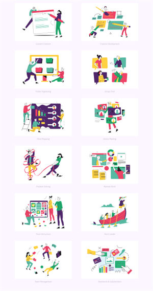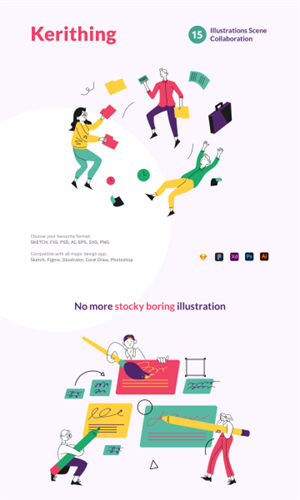 团队合作与协作插图 - Kerithing Pack 包含 15 个各种格式的预制场景插图,可以成为您网站或应用程序的一部分。