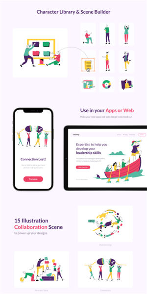 为网站、应用程序或演示文稿创建与团队合作和协作相关的独特插图。使用 Keriting 插图而不是那里的笨拙插图来人性化您的数字客户体验。