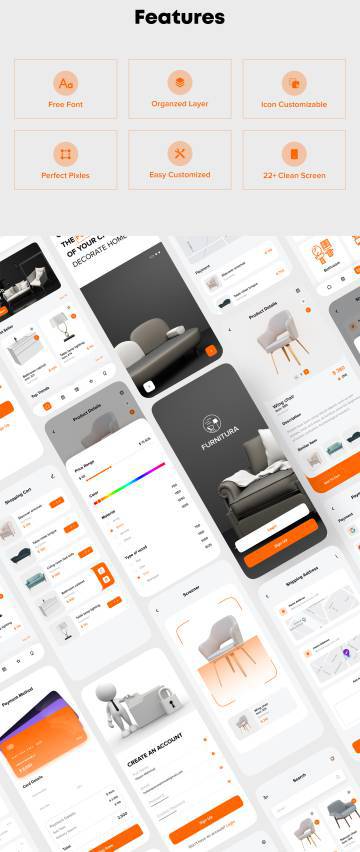 家具在线订购销售移动APP商城UI界面素材 FURNITURA - F