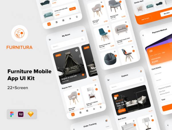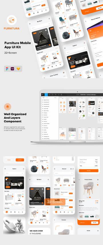 Furnitura - 家具移动应用程序 UI 套件。这让用户可以订购各种优质的家具,而不必到地方去。它还可以帮助用户搜索其他人的想法来装饰他们的家。家具移动应用程序是一个完美的 figma、adobe XD、草图,以分层和有组织的元素设计了 22 多个屏幕。每个屏幕都完全可定制、易于使用,并且屏幕已准备好用于 iOS 应用程序。我已经发送了一个包裹,但我知道该联系谁作为问题。您可以轻松更改任何设计。它很容易定制,也有很好的文档记录。