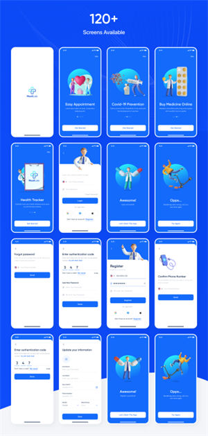 医院预约挂号疾病监控在线药房移动UI界面素材 Medilab - Su