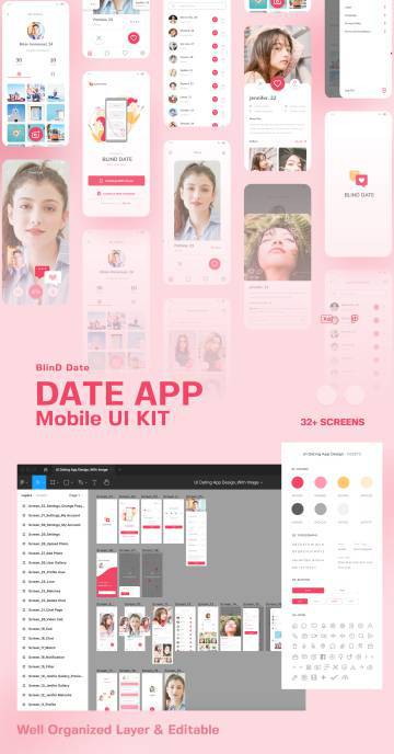 Date App 是一个 UI 套件,涵盖了使用 Figma 设计的约会搜索以在 UI 中实现:自动布局、现代设计和简单