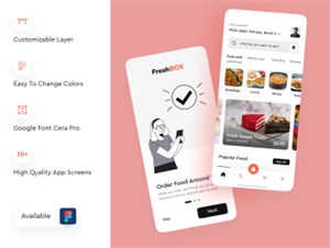 图穷联素材库 » 高级餐厅外卖订餐食品移动APP界面UI素材 FreshBox - Pr