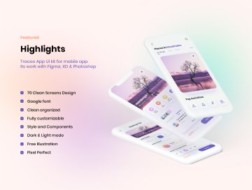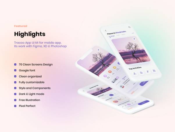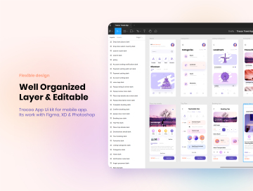 Tracoo 是一款适用于 Figma、XD 和 Photoshop 的生产力应用程序 iOS UI 套件。设计与干净的屏幕设计趋势。