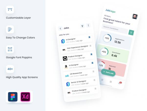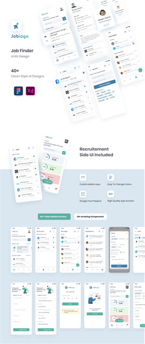 Jobiago 是 Monodeep 专业设计的 Figma 中的 Job Finder App UI KitDesign。