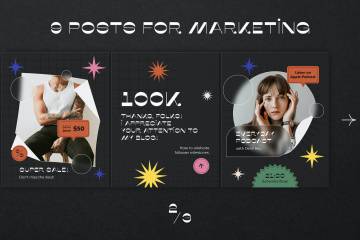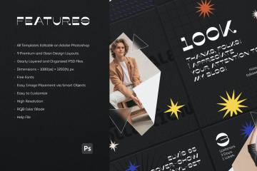 专业的 Instagram 模板 为您的 Instagram 或 Facebook 获取一组 9 个很酷的横幅。只需放置您的照片并编辑文本。这简单!