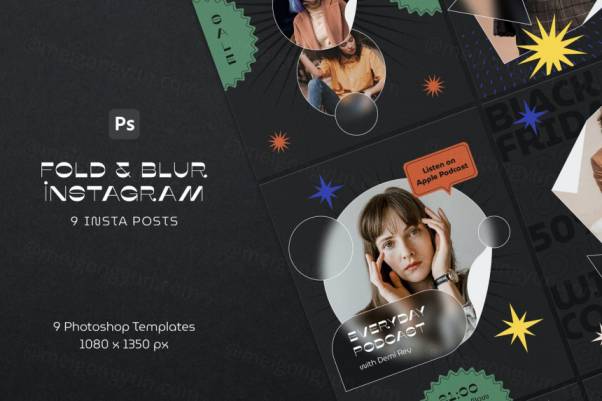 图穷联素材库 » 潮流模糊毛玻璃折叠效果Ins自媒体横幅广告模板 Fold Blur