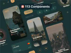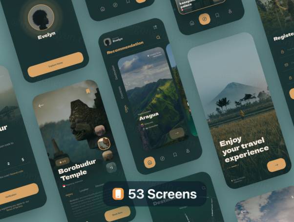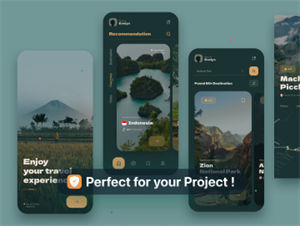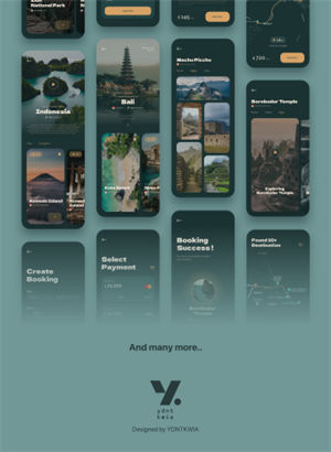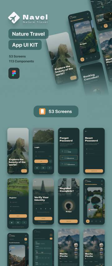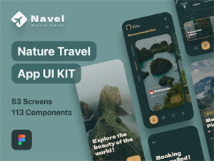 图穷联素材库 » 深色模式高级绿旅游分享社区APP界面UI素材 Navel - Natu