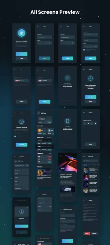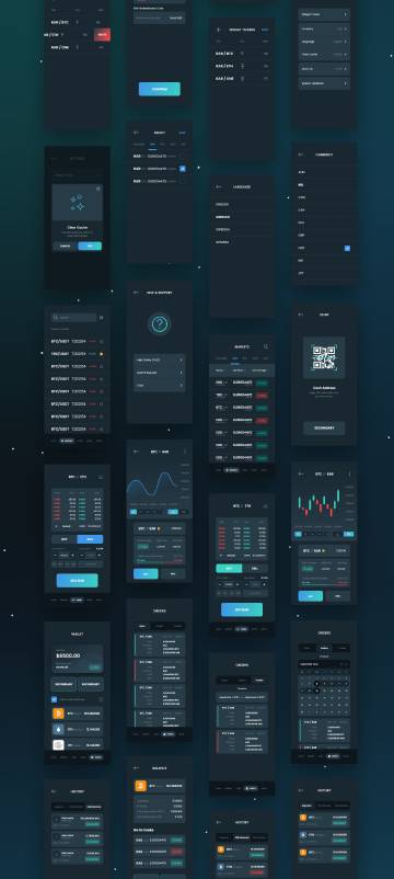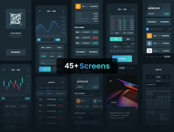 图穷联素材库 » 高级深色模式加密货币交易平台APP界面UI素材 Cryptocurre