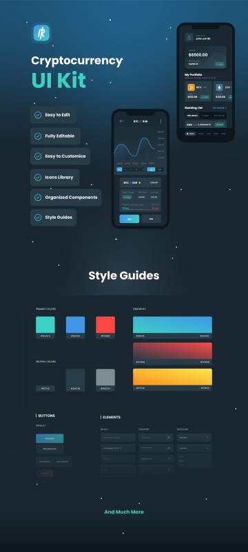 Rarry 是为加密货币业务创建的新 UI 套件。您可以轻松买卖加密货币的地方。所有图层组织良好且易于使用。我们创建了许多组件和样式指南,您可以根据自己的品牌进行自定义。