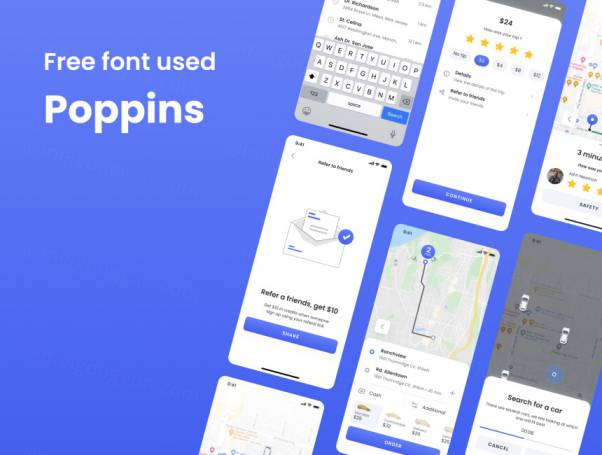 图穷联素材库 » 简洁干净的出租车顺风车移动APP界面UI素材 Tax.io - Tax