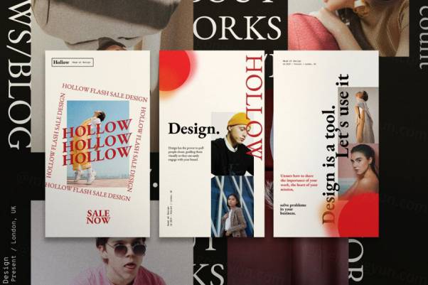 图穷联素材库 » 欧美极简主义动态美学Ins新媒体宣传海报模板 HOLLOW - Soc