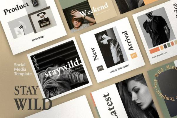图穷联素材库 » 北欧极简主义Ins新媒体品牌营销宣传海报PSD模板 Staywild