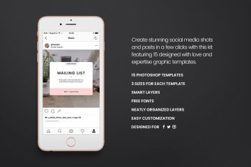 Social Media Booster Kit的第 4 卷为您带来了全新的风格:新的颜色、网格和字体。有你需要的一切,用令人印象深刻的、突出的出版物来填充你的社交媒体。该软件包包括15 个为 Instagram、Twitter 和 Facebook原生设计的模板。它们中的每一个都易于编辑和自定义,您所要做的就是通过智能对象将图像替换为您的作品并添加您的副本。就是这样!这套将非常适合您的个人或商业需求:非常适合博主、时尚和零售品牌、杂志等等!