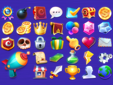 图穷联素材库 » 高品质3D卡通风格游戏图标 DACON – Game Icon Gen