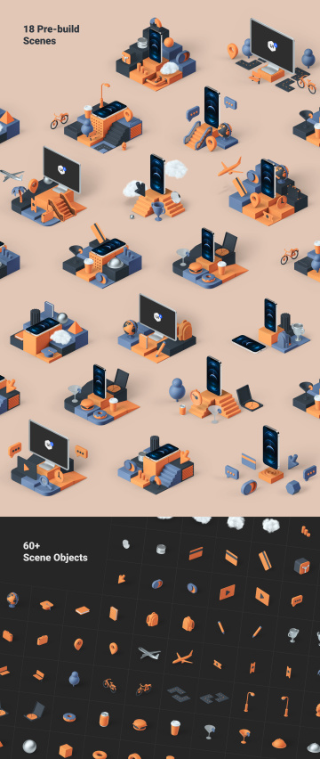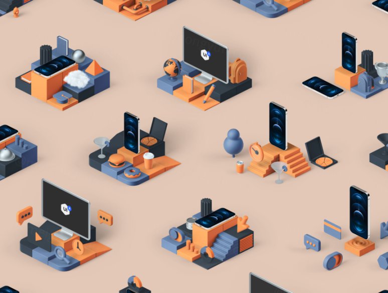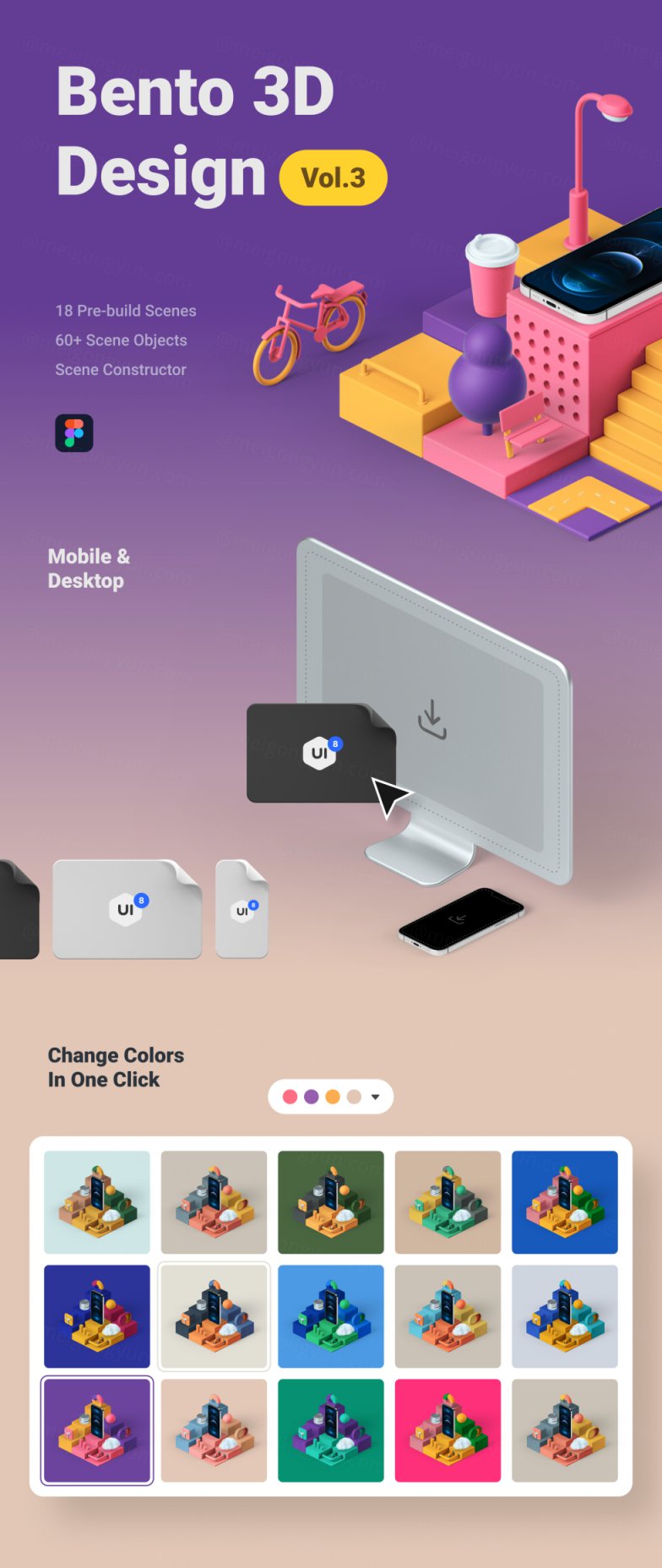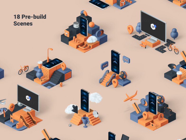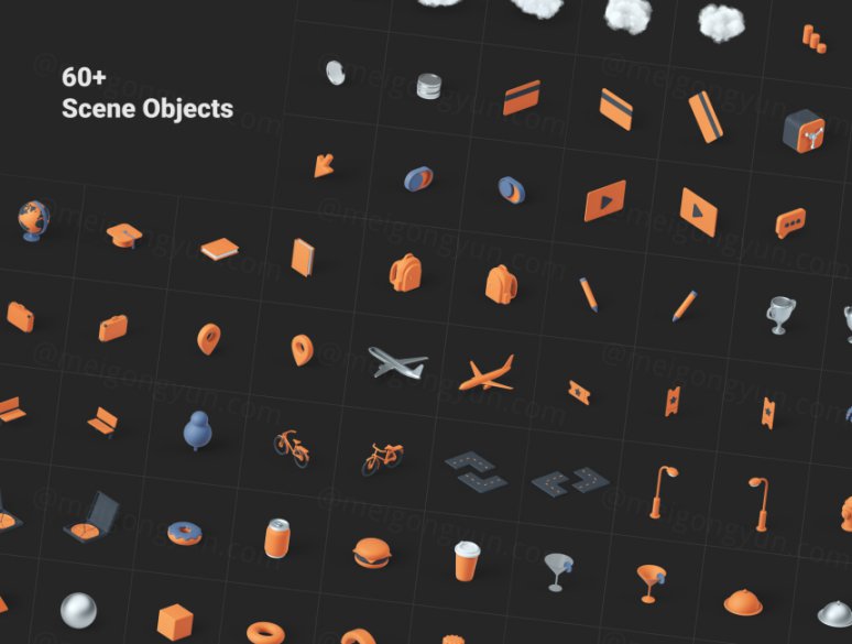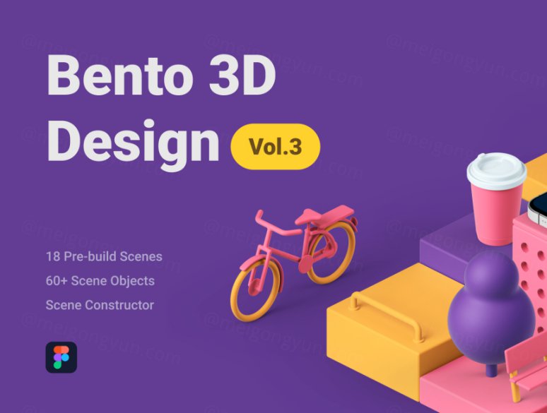 图穷联素材库 » 3D视觉设计系统元素场景图标素材 Bento 3D Design