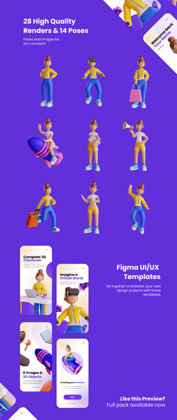 借助此高质量3D Web插图-角色和UI / UX包,使您的下一个设计或动画项目栩栩如生。用于说明,或使用此准备好使用的角色来创建自己的场景。
