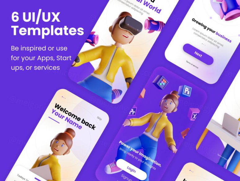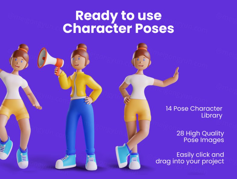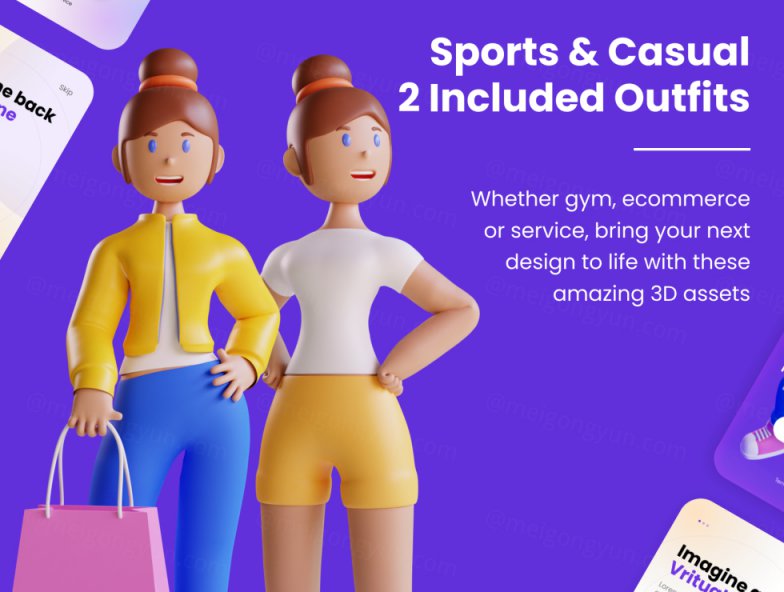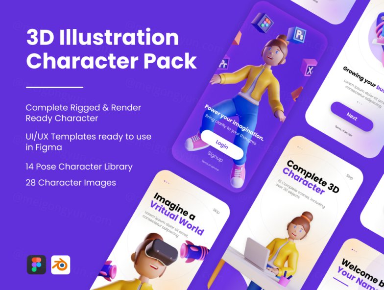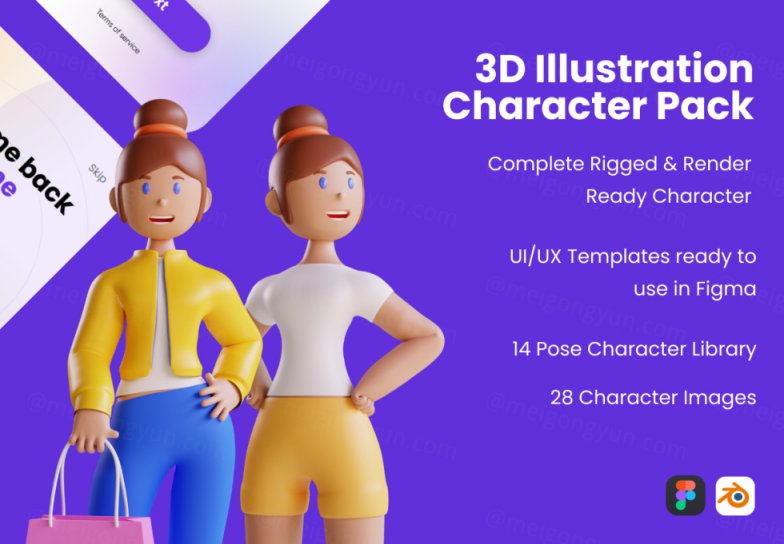 图穷联素材库 » 高质量3D人物角色Web UI插画素材 3D Web Illustra