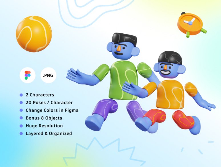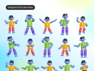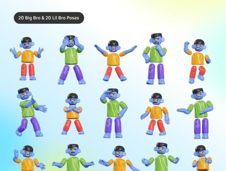 MaBro是一个有趣的Brothers 3D插图包,其中包含20个姿势和额外的3D对象。