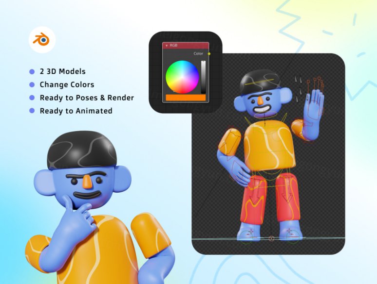 该软件包包括添加了绑定的3D模型。因此,您可以创建自己的姿势并准备好进行动画处理!
