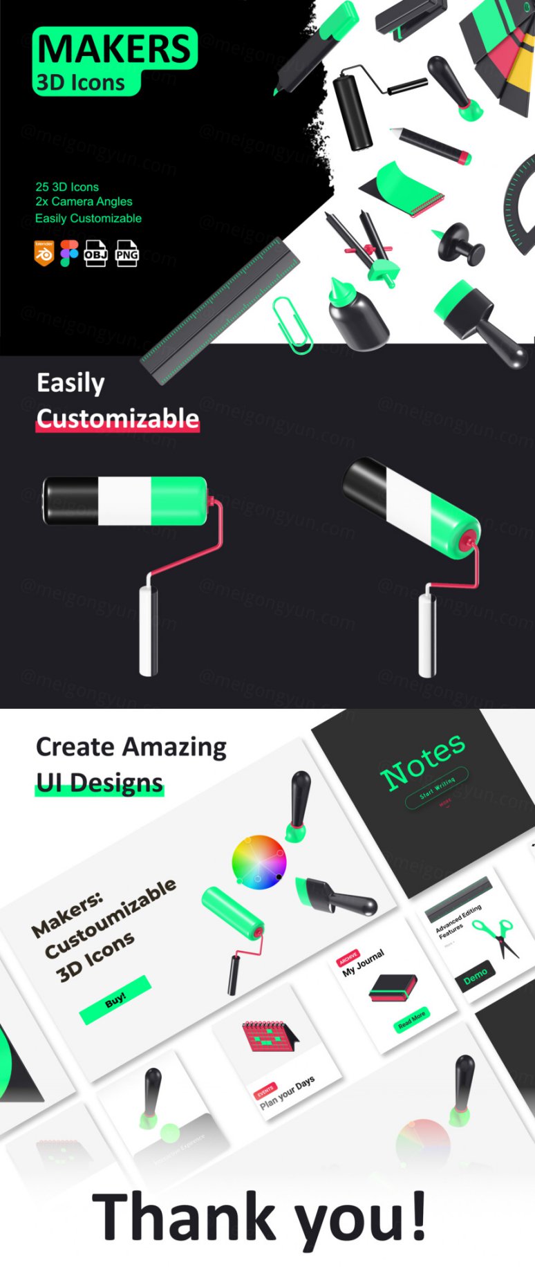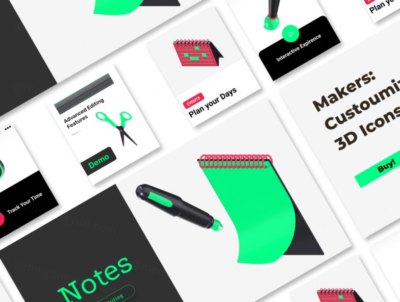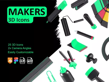 图穷联素材库 » 3D创意图标合辑 Makers - 3D Icons