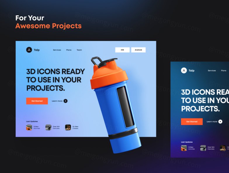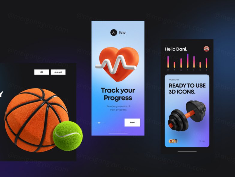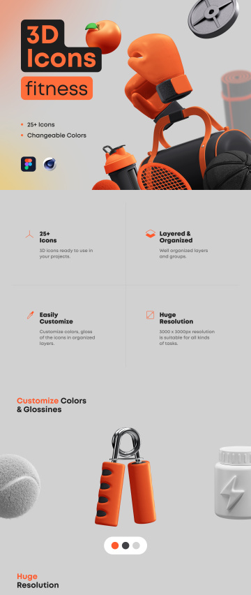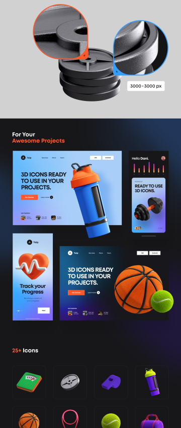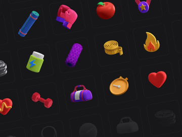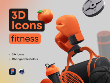 25个三维立体健身器材元素 3D Icons Pack - Fitne