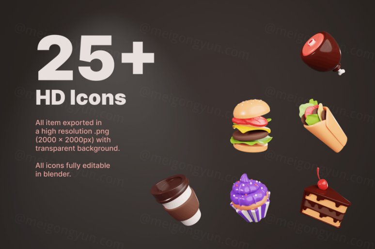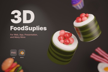 您的项目能引起胃口吗?通过使用我们的数字厨师制作的这些食品供应 3D 图标,您可以将您的项目升级为食欲建设者。可用于任何着陆、应用程序、演示文稿和其他项目。在 Blender 中完全可定制。