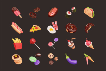 图穷联素材库 » 三维渲染卡通快餐零食图标素材 Food Supplies 3D Ico