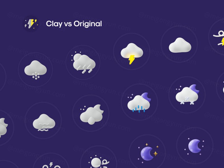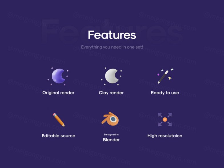 此外,这个包中的所有图标都有一个粘土渲染,用于最小的环境和设计。