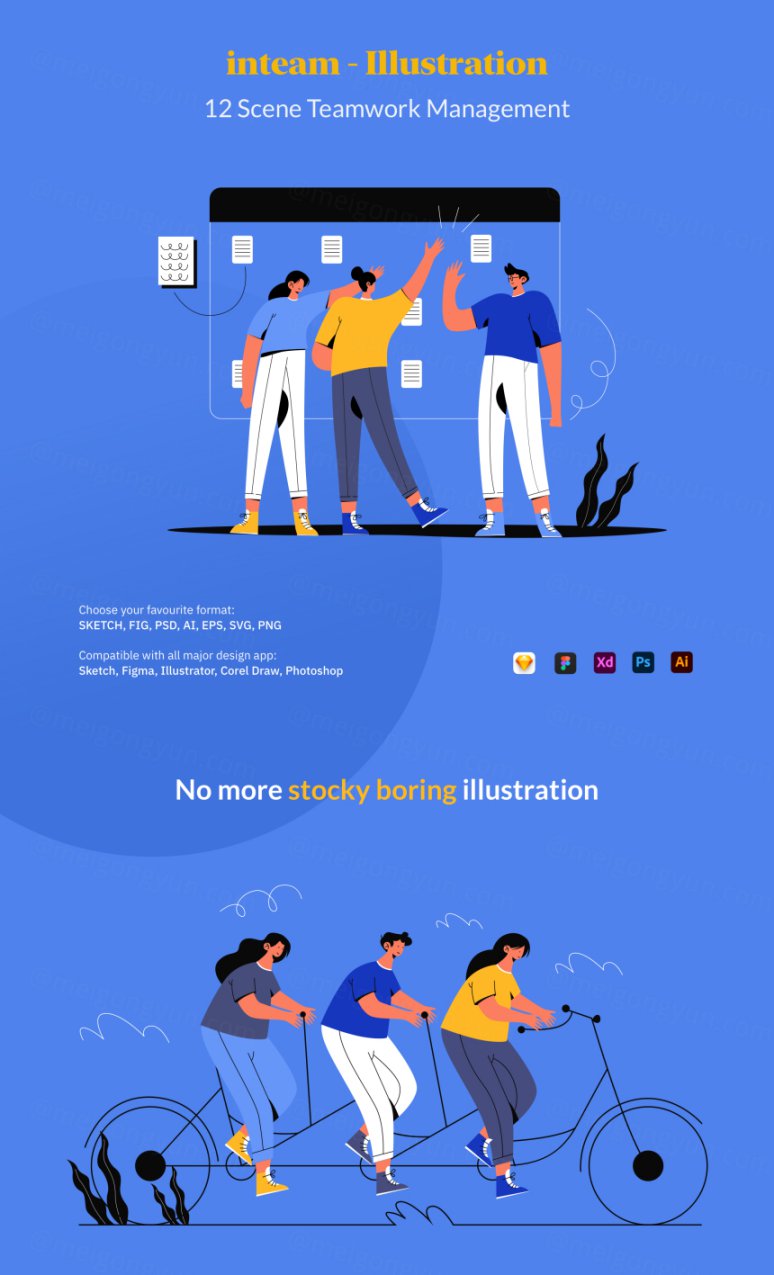 图穷联素材库 » 企业团队协作公司团建web插画合集包 Inteam - Team Ma