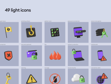 浅色和黑色版本的 49 个安全图标的集合。高分辨率。所有图层都连接到颜色样式。所以改变颜色非常容易。