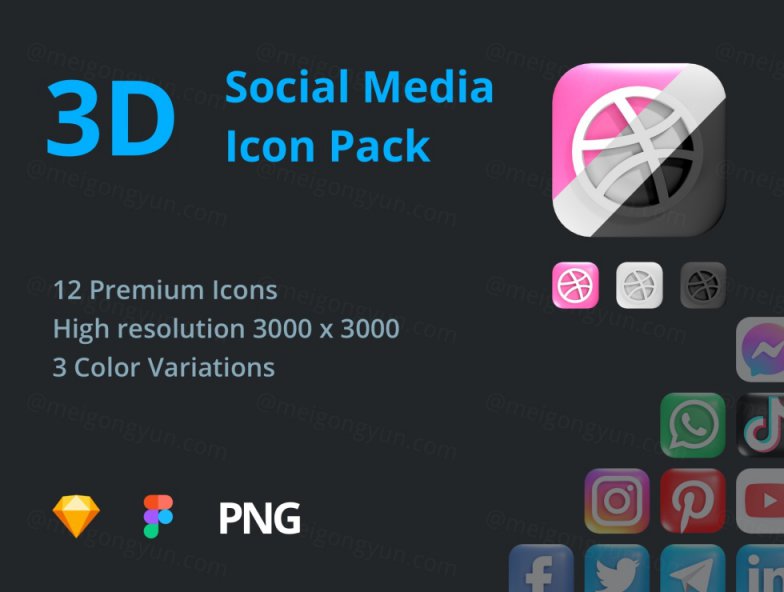 12 个时尚的 3D 社交媒体图标