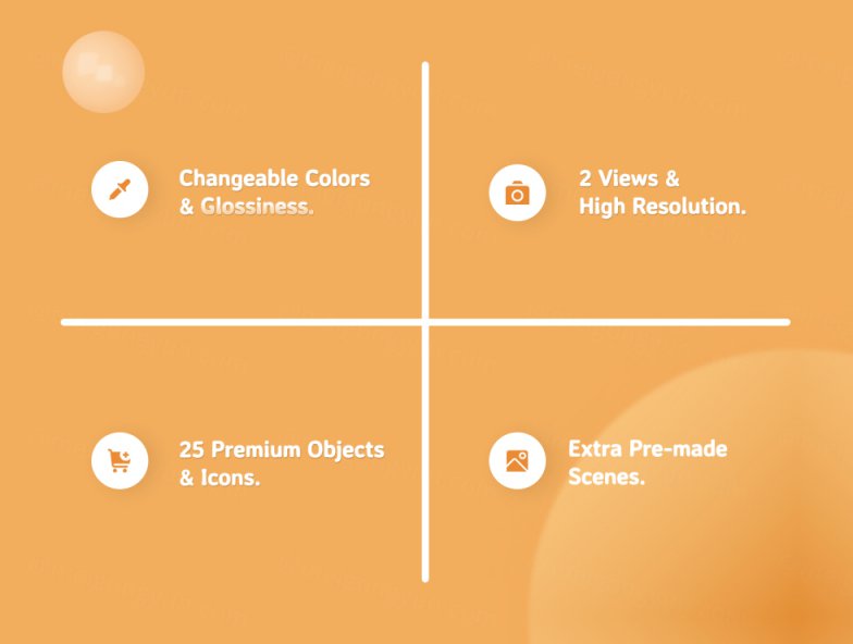 您将在此包中找到 25 个独特的 3D 元素,您可以通过组织良好的图层和组轻松更改颜色。