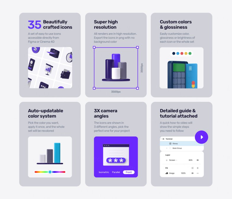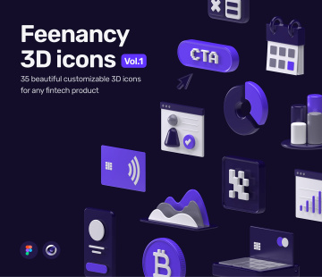 Feenancy 是一组适用于任何金融科技产品的自定义 3D 图标。使用这些手工制作的图标创建令人惊叹的独特项目,可在 Figma 中轻松编辑,并在 Cinema 4D 中完全自定义。3D 图标摇滚!