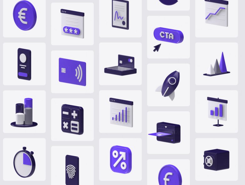图穷联素材库 » C4D渲染三维金融科技产品图标合辑 Feenancy 3D icons