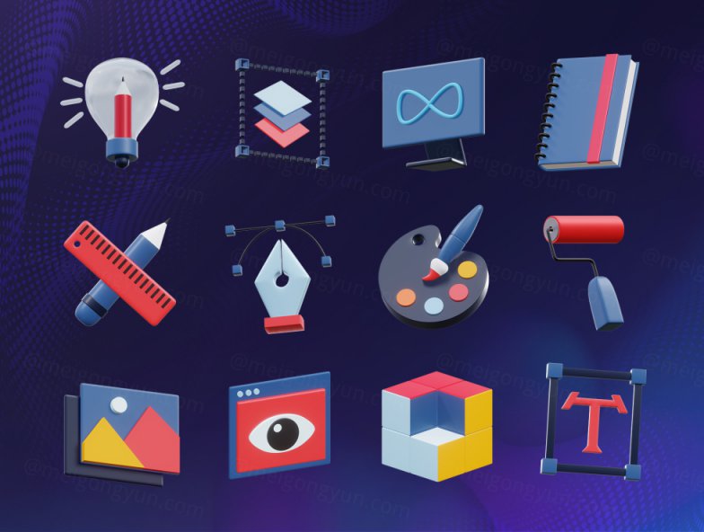 图穷联素材库 » 平面设计三维渲染图标合集 Graphic Design 3D Icon