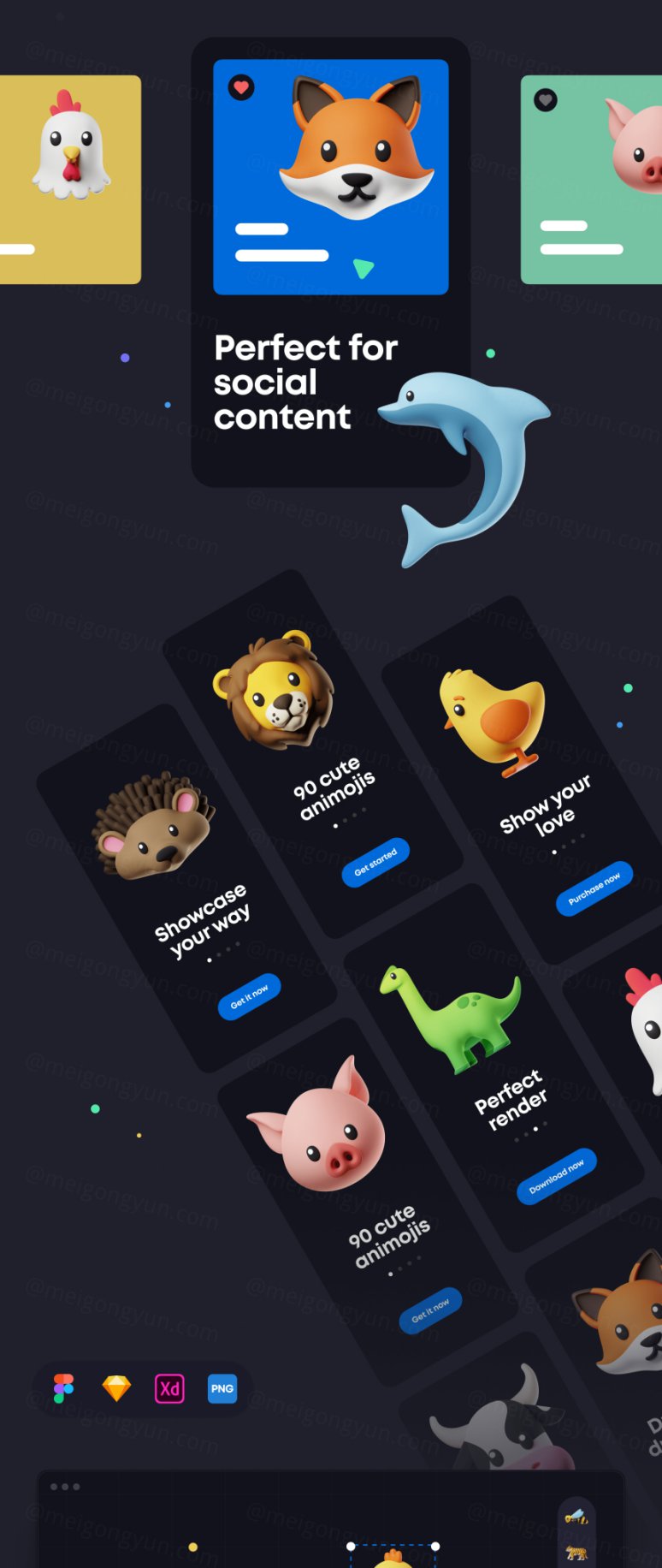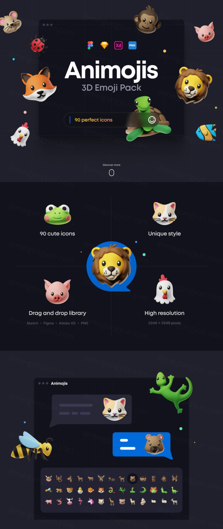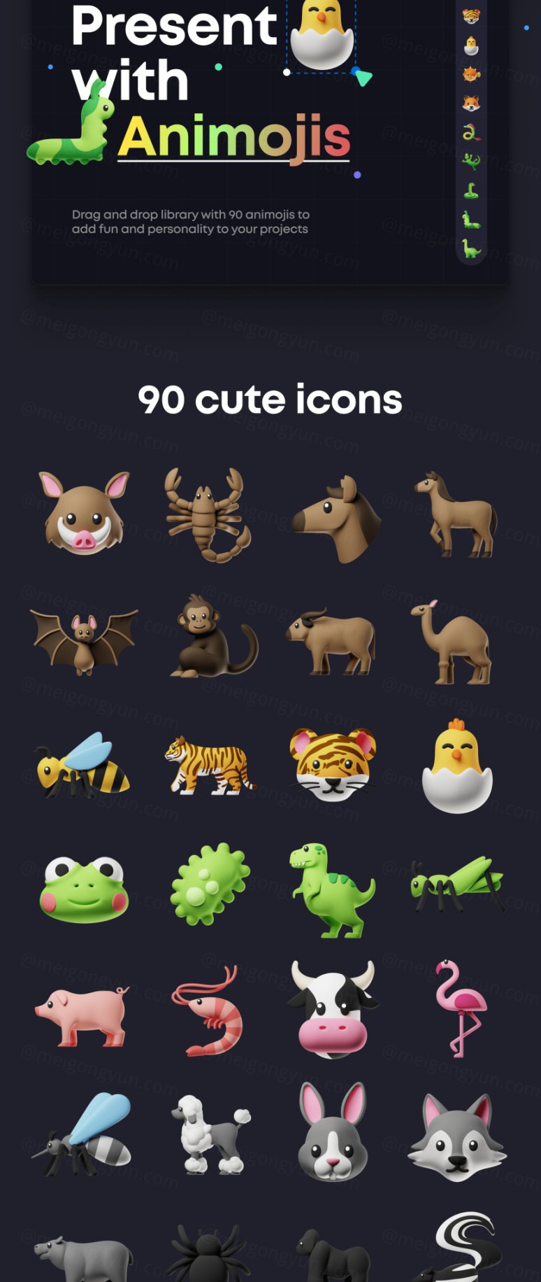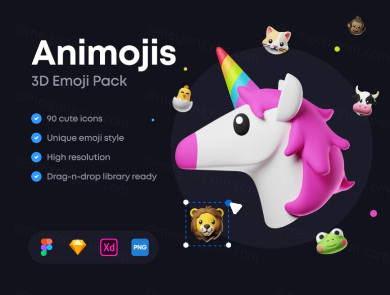 Animojis 是一组时尚有趣的表情符号 3D 图标,可立即在您的项目中使用。该包由 90 个高分辨率、组织良好且常用的图标组成,可以使您的下一个项目更加友好和平易近人,色彩丰富。您只需要在准备好库的情况下轻松地将图标拖放到您的项目中即可。