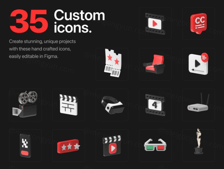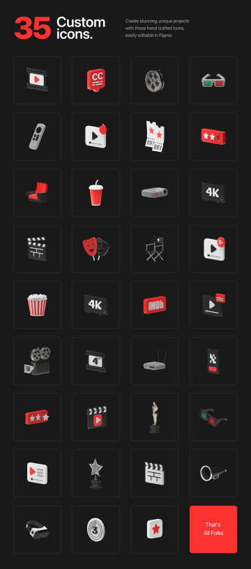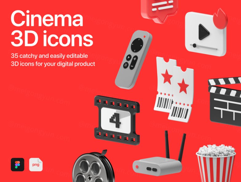 Cinema 是一组适用于任何数字产品的自定义 3D 图标。使用这些手工制作的图标创建令人惊叹的独特项目,可在 Figma 中轻松编辑,并在 Cinema 4D 中完全自定义。3D 图标摇滚!