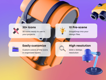 为您的网站、初创公司、应用程序、游戏、演示文稿轻松定制 3D 图标。