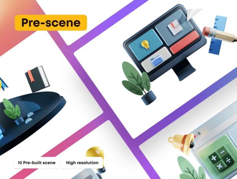 图穷联素材库 » Blender三维渲染教育学校培训机构主题3D图标合辑 Academe