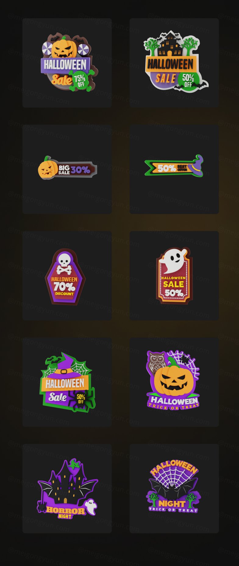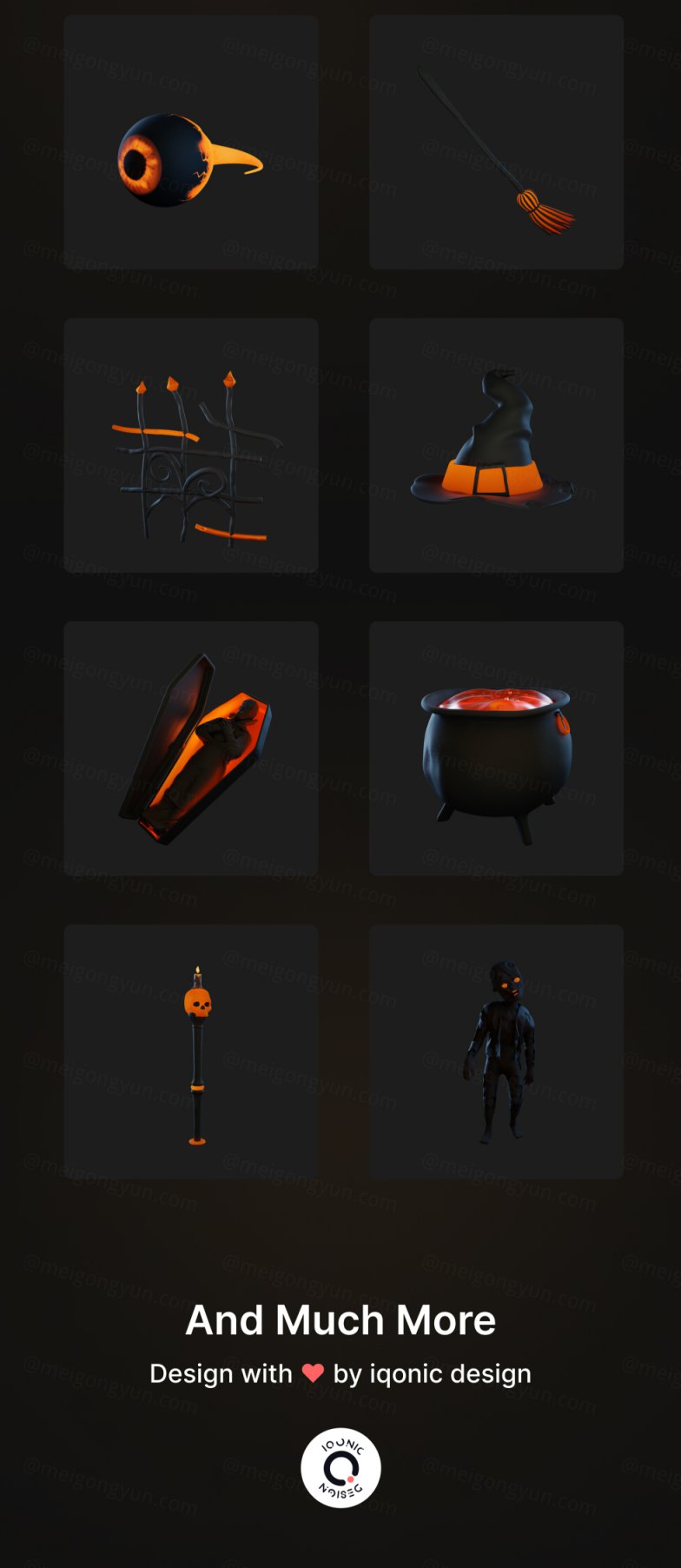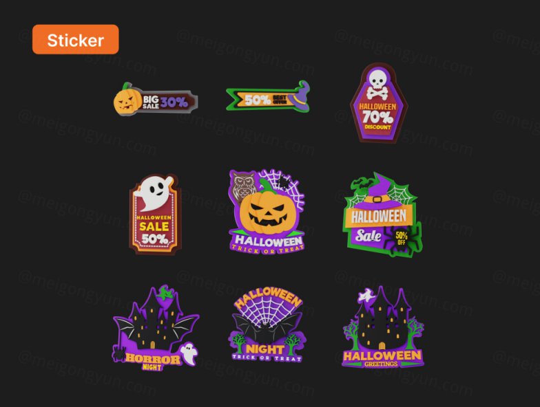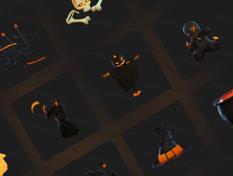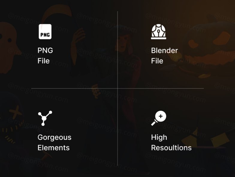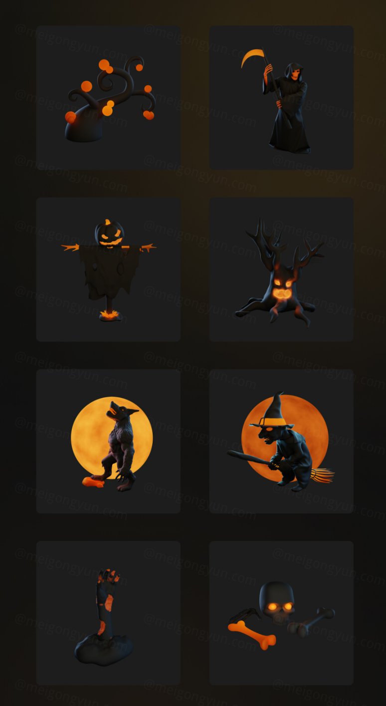 图穷联素材库 » 高质量Blender三维渲染万圣节恐怖主题图标贴纸合辑 Hallows