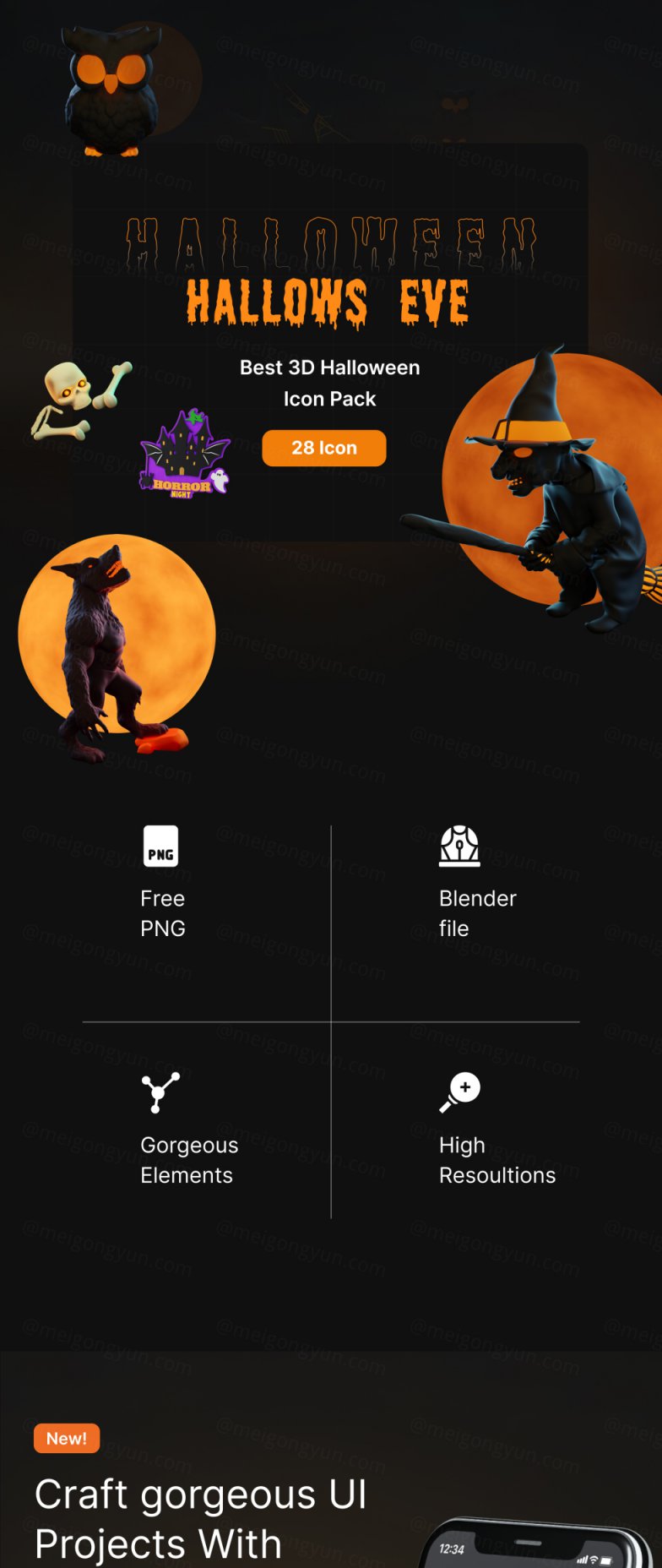 Hallows Eve Pro 是一个可怕的、可怕的、优质的万圣节 3D 图标和贴纸包。高级万圣节 3D UI 元素包带有一堆可怕的图标,非常适合令人毛骨悚然的 UI/UX。
