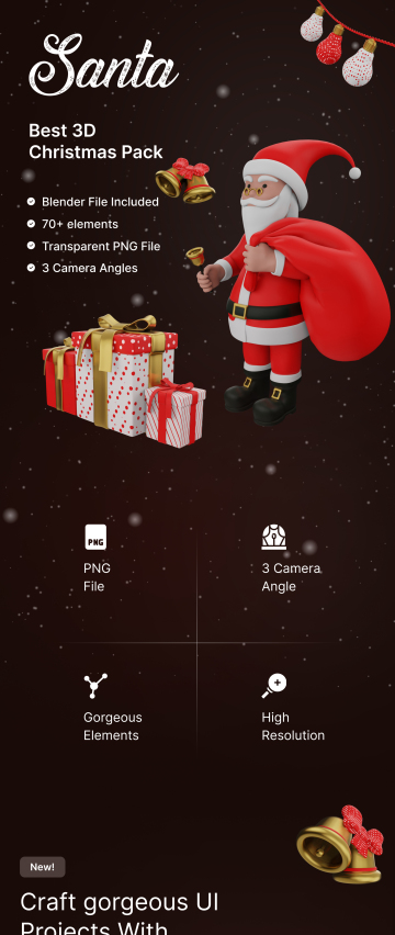 无论是个人圣诞节相关模板还是商业网站横幅,这个圣诞节 3D 插图包都可以非常方便地用圣诞节的所有东西填充您的网站/移动应用程序。