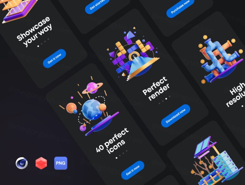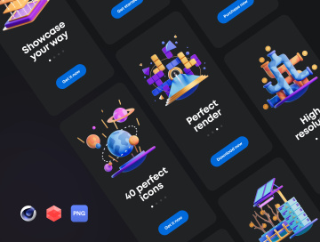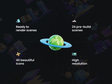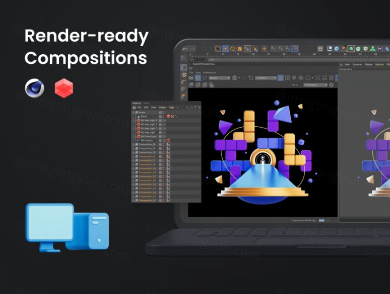 从 24 个不同的场景和 40 个漂亮的图标中进行选择,或者混合搭配不同的对象,在 C4D(使用 RedShift)中创建自己喜欢的对象。