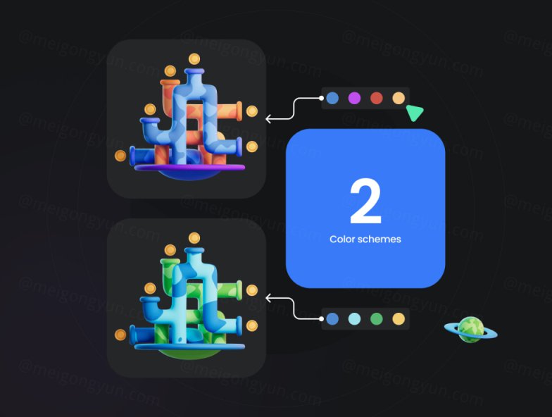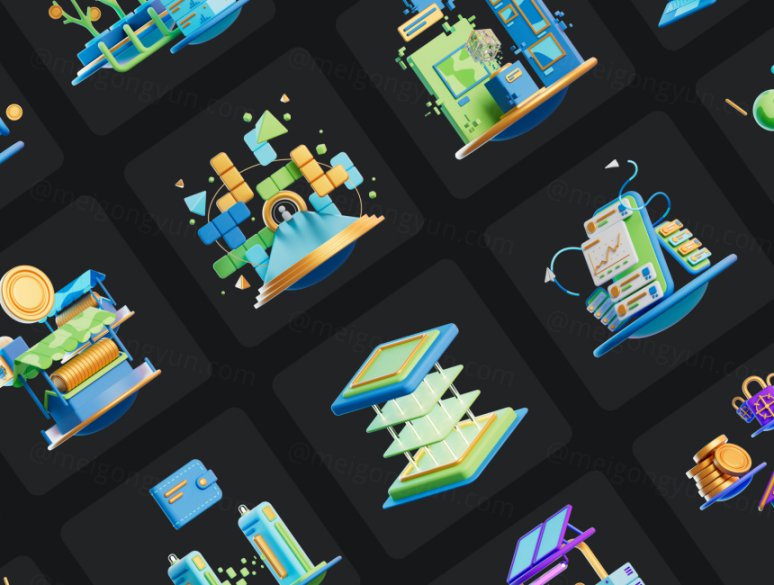 图穷联素材库 » 高质量C4D三维虚拟加密货币场景3D图标插画素材 DeFicons v