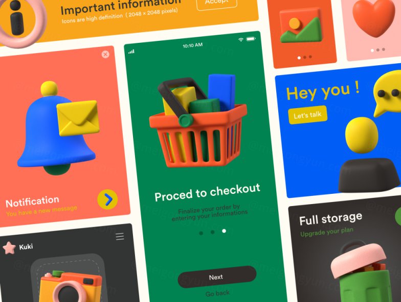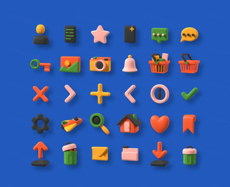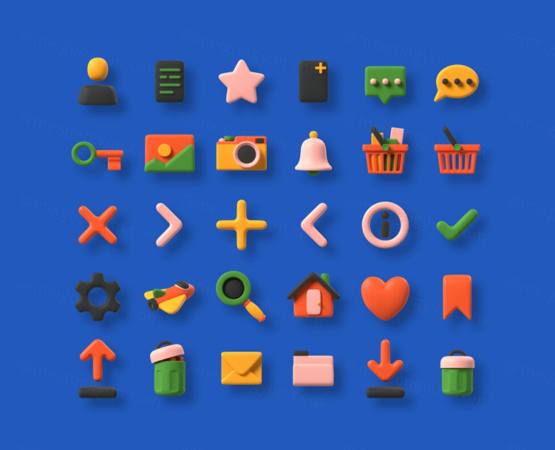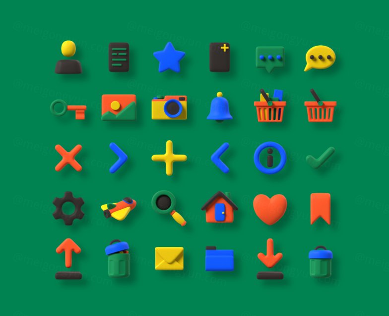 图穷联素材库 » 高质量Blender三维渲染卡通橡皮泥质感童年3D图标合辑 Multi