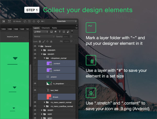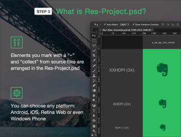 RESONATOR可以导出所有设计元素,并自动整合为开发者可用的文件名和文件夹结构。这一功能适用于任意平台: Android、iOS、Retina网页、甚至Windows Phone 🙂